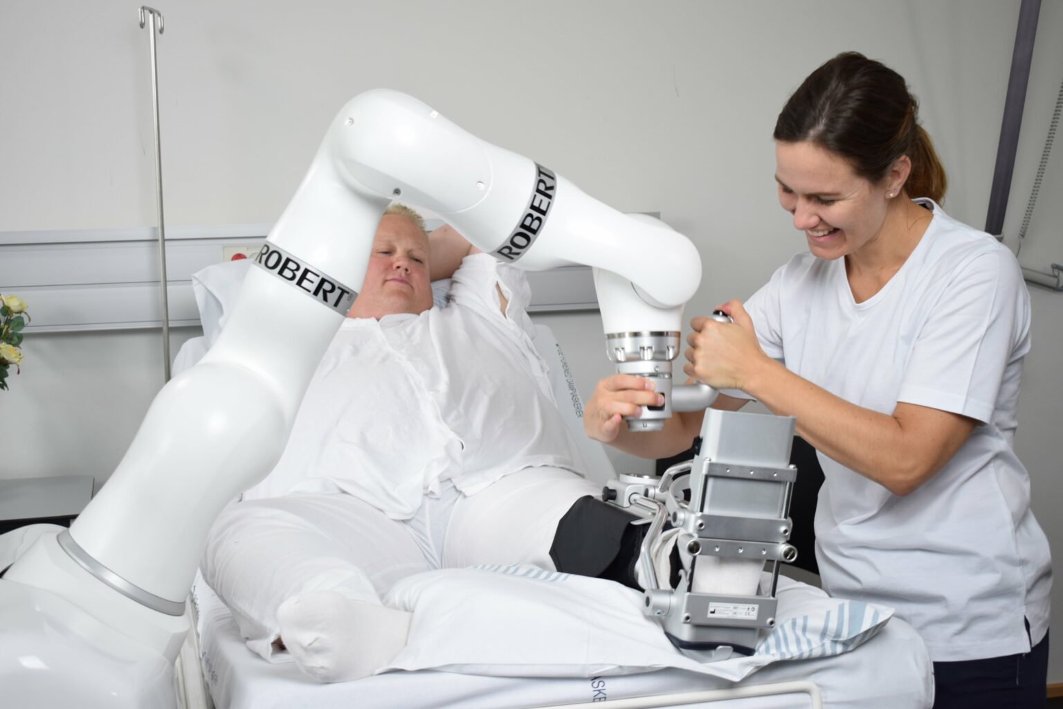 Le robot de rééducation ROBERT a été conçu pour faciliter la récupération des patients dans le cadre d’un processus de rééducation. Il est essentiel de mobiliser régulièrement les articulations et les muscles pour favoriser la guérison et éviter les complications liées à une immobilisation prolongée. Robert permet de réaliser ces mouvements de manière répétitive et précise, soulageant ainsi le personnel soignant et optimisant le processus de rééducation. Robert permet de :
